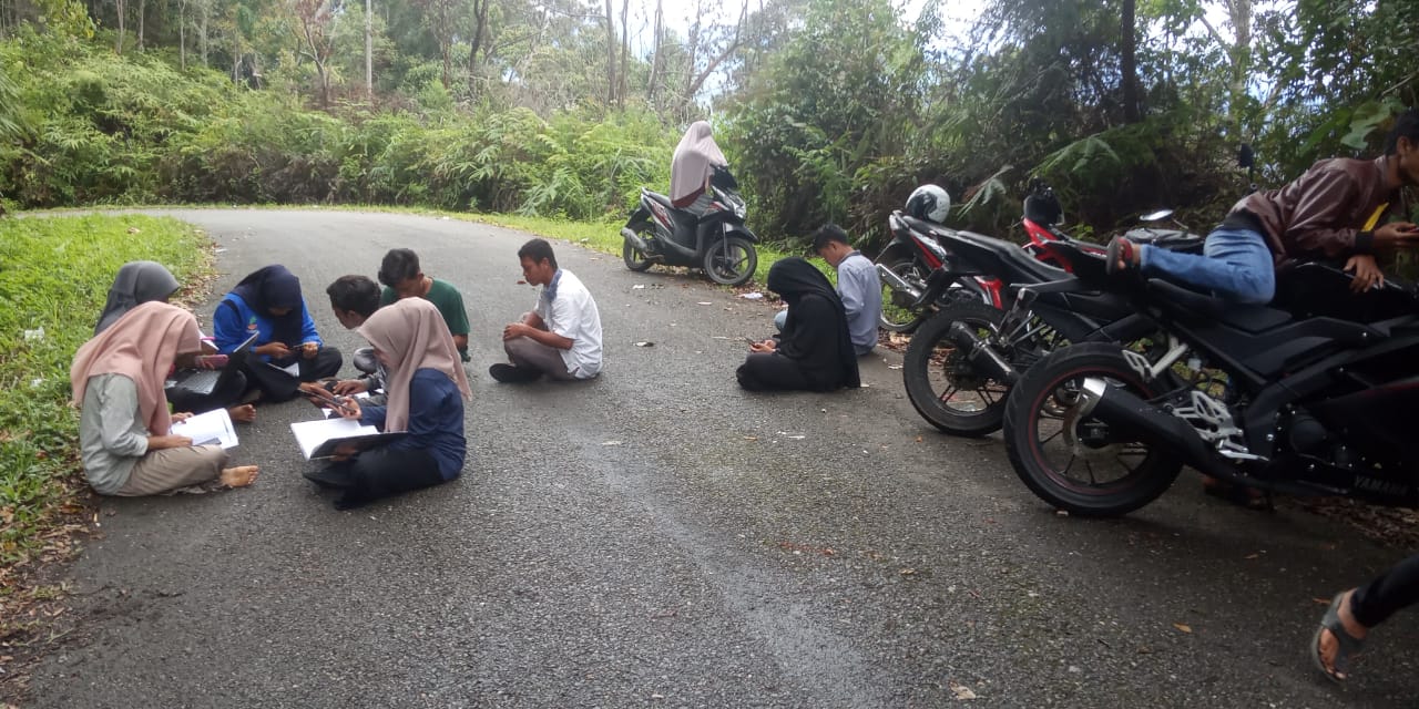 Demi kuliah online, mahasiswa Beutong Ateuh Banggala Kabupaten Nagan Raya viral karena harus mendaki pegunungan hutan lindung sekitar 30 menit perjalanan dari lokasi permukiman warga.