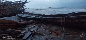 Melalui pantauan radio RAPI Abdya, Wabup Muslizar juga melaporkan kondisi laut semakin ganas, dimana menurut pantauan nya ombak-ombak semakin besar, dan terus menghantam bibir pantai sehingga satu unit boat yang sedang dirangka disana sudah terjatuh ke laut, sebagian bodi boat yang sdang dibuat.