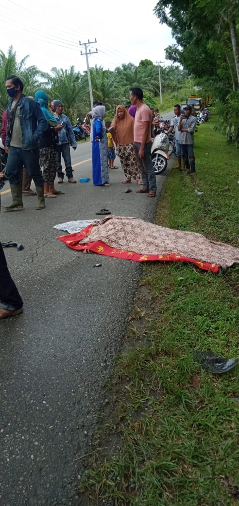 Narasiterkini.com, Suka Makmue-Diduga hendak mendahului kendaraan lain, pengendara sepeda motor ini meninggal tergilas truck di jalan Meulaboh-Tapaktuan tepatnya di lintasan gunung trans di Darul Makmur, Senin, (10/8/2020)