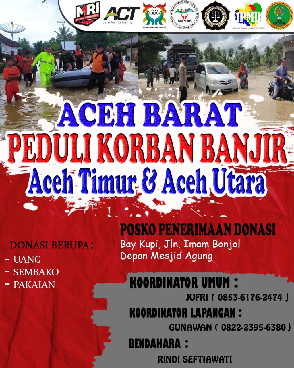 Perkumpulan Mahasiswa yang bersatu dalam Aceh Barat Peduli Korban Banjir Aceh Utara Dan Aceh Timur melakukan aksi galang dana mulai dari tanggal 11 sampai 16 Desember 2020
