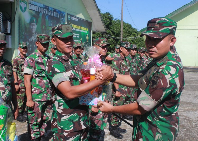 Pada kegiatan yang berlangsung di Lapangan Apel Makodim 0116/Nagan Raya tersebut, Komandan Kodim 0116/Nagan Raya sendiri yang membagikan langsung ratusan Bingkisan Lebaran ke anggotanya. Otomatis semua anggota antusias dan senang menerimanya.