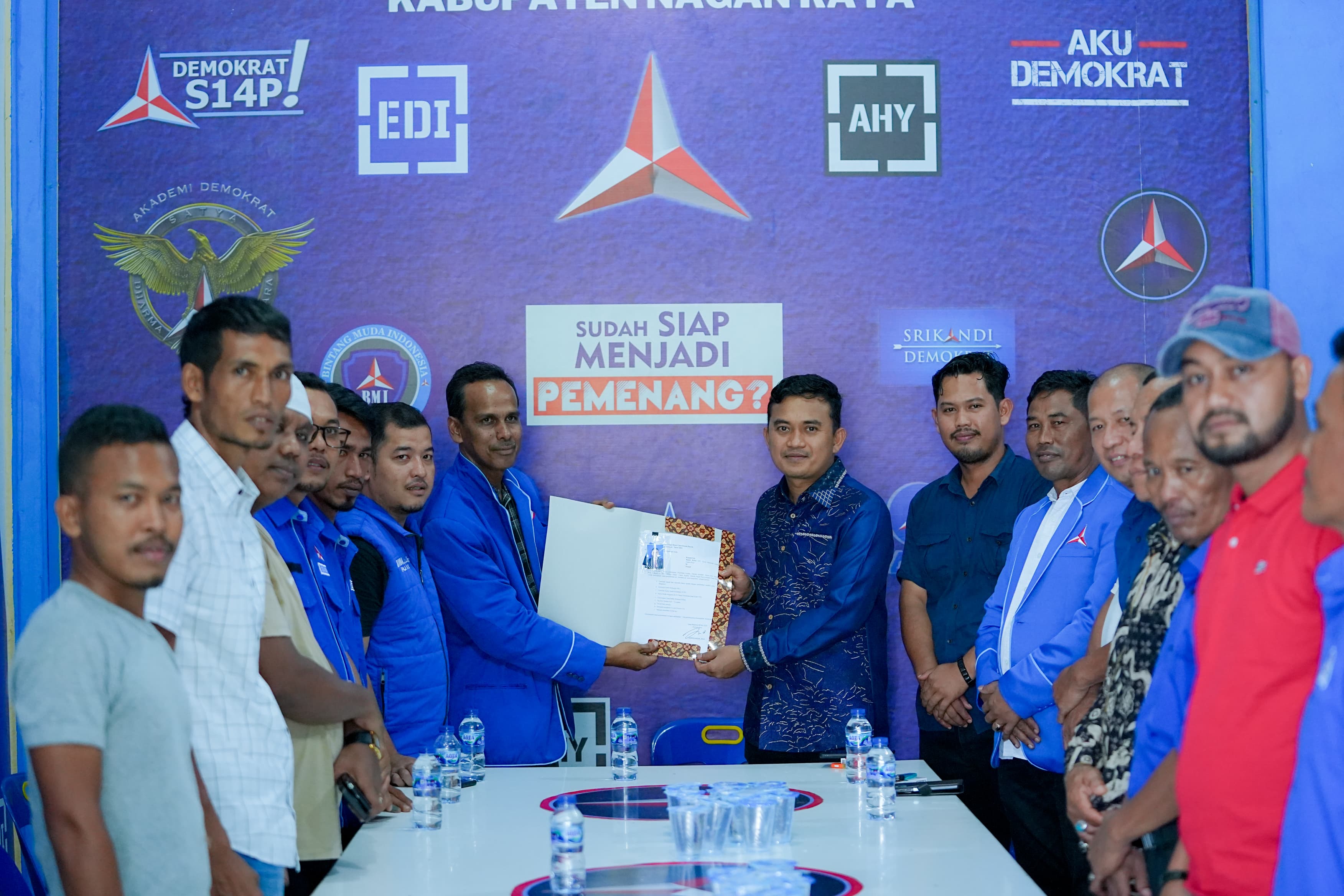 Berkas pendaftaran Jonniadi, S.E.,M.Si diterima oleh Sekretaris DPC Demokrat Ridwan dan Sekretaris Tim Penjaringan Munawar, S.Sos.,M.Sos dan juga para pengurus DPC Partai Demokrat Nagan Raya.