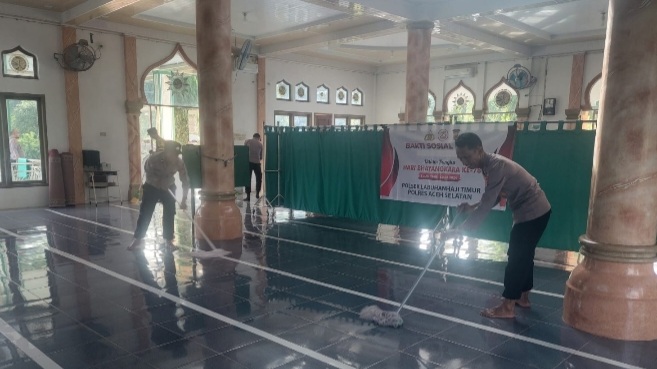 Dalam kegiatan ini juga Kapolsek Labuhanhaji Timur dan personil Polsek Labuhanhaji Timur beserta Keuchik bersama-sama dengan para pengurus Masjid membersihkan bagian dalam Masjid, sekitaran pekarangan Masjid serta tempat pengambilan air wudhu.