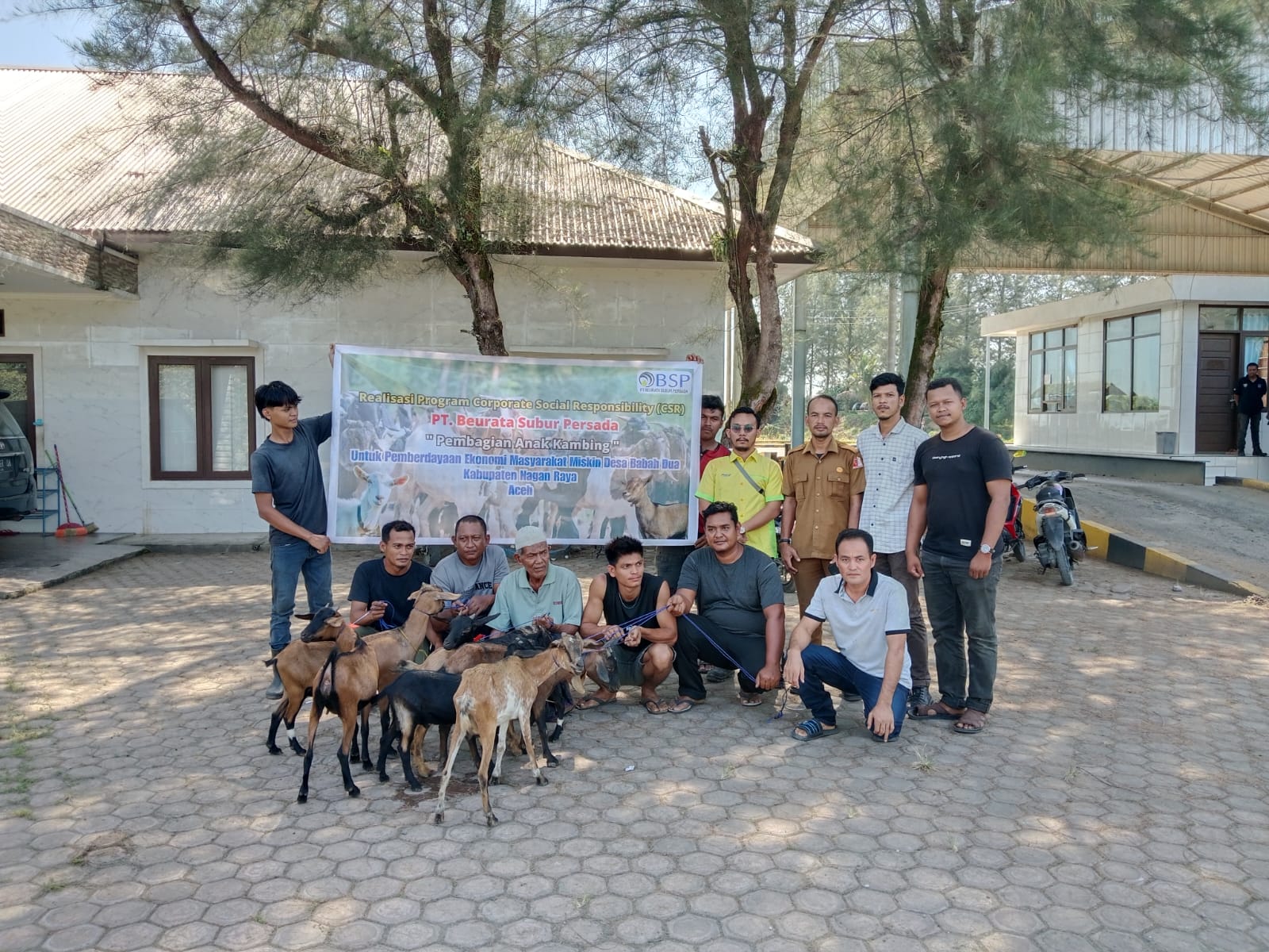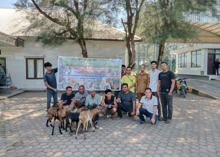 Narasiterkini.com, Suka Makmue- Manajemen pabrik kelapa sawit PT Beurata Subur Persada (BSP) Babah Dua Kecamatan Tadu Raya Kabupaten Nagan Raya Provinsi Aceh bagi bibit kambing terhadap kelompok masyarakat Babah Dua, Senin 15/7/2024.