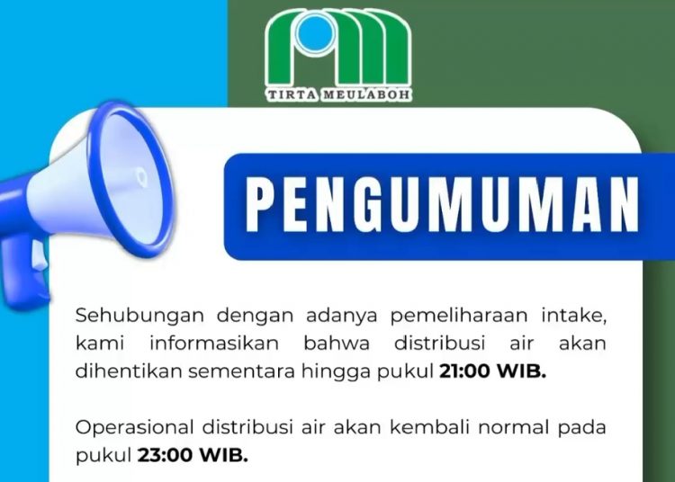 Narasiterkini.com, Meulaboh – Berhubungan adanya pemeliharaan Intake perusahaan Umum Daerah Air Minum (Perumdam) Tirta Meulaboh menghentikan sementara Pendistribusian air bersih pada Sabtu (15/3/2025).
