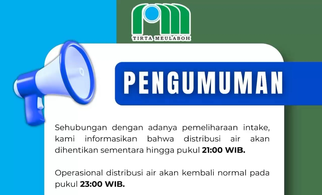 Perumdam Tirta Meulaboh juga mengingatkan agar pelanggan menggunakan air secara bijak dan tidak melakukan pemborosan, terutama selama masa penghentian distribusi sementara.