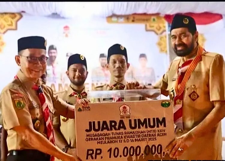 Narasiterkini.com, Meulaboh -Meulaboh – Musabaqah Tunas Ramadhan (MTR) ke-24 Gerakan Pramuka Kwartir Daerah (Kwarda) Aceh resmi ditutup oleh Gubernur Aceh, Muzakir Manaf, di Lapangan Upacara Dinas Pendidikan Aceh Barat, Sabtu (15/3/2025) malam. Acara yang berlangsung di Bumi Teuku Umar johan Pahlawan ini menobatkan Kwartir Cabang (Kwarcab) Aceh Besar sebagai juara umum.