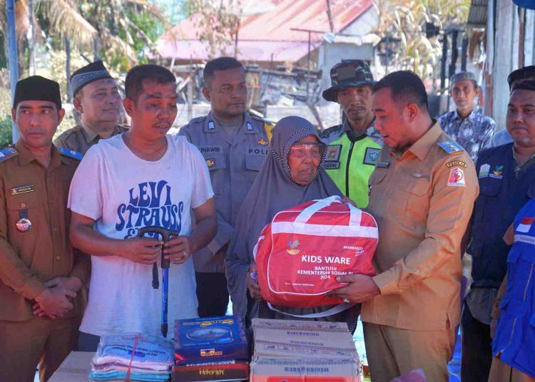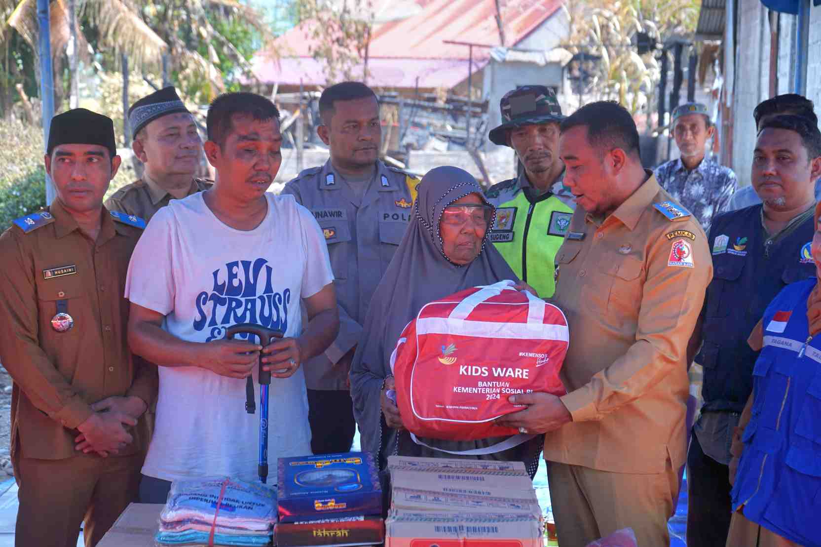 Dalam kesempatan tersebut, Wabup Raja Sayang menyerahkan secara simbolis bantuan masa panik kepada Zainuddin bersama ibunya, Dara, warga setempat yang rumahnya mengalami kebakaran hebat.