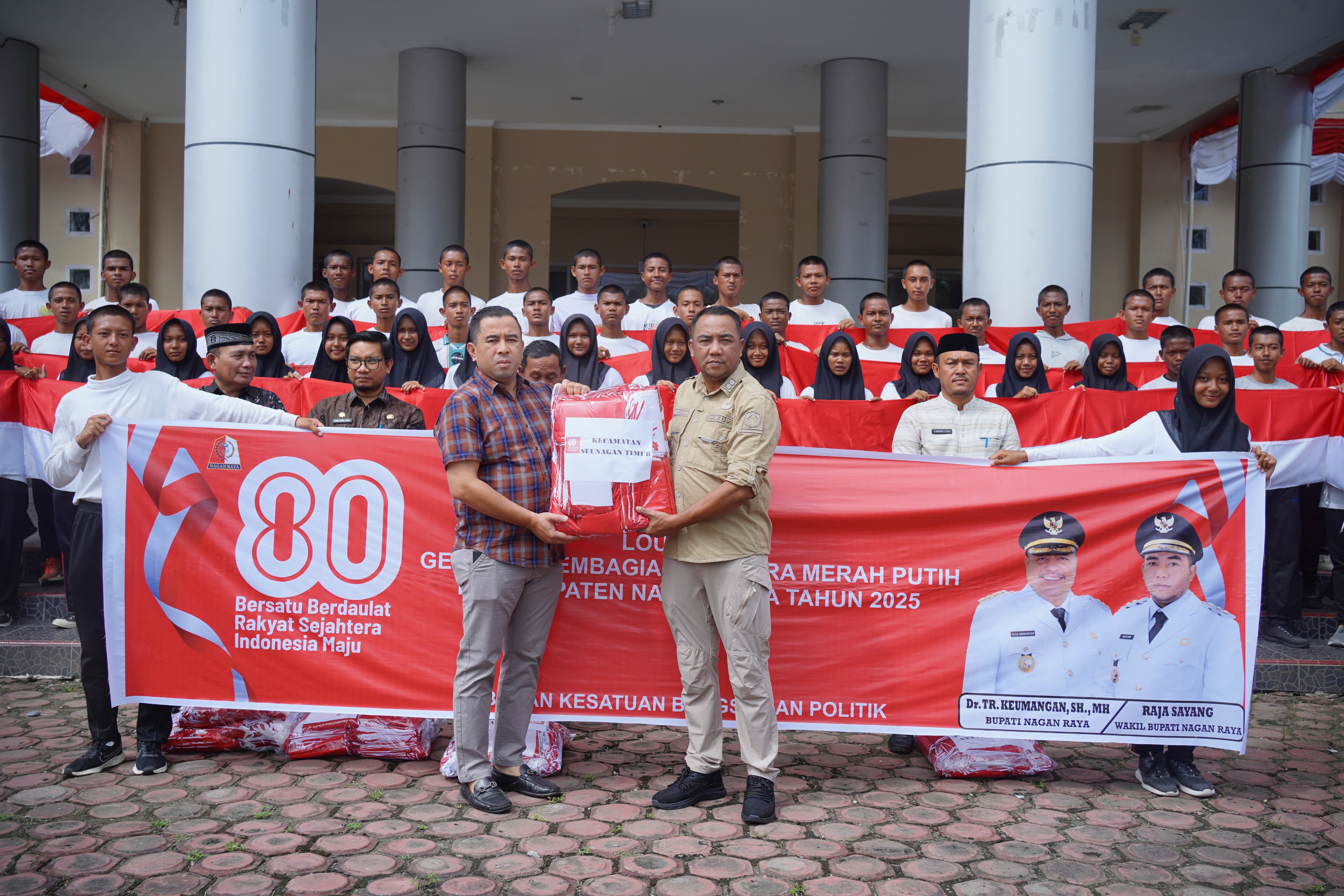 Narasiterkini.com, Suka Makmue– Dalam rangka menyambut dan memeriahkan Hari Ulang Tahun (HUT) ke-80 Kemerdekaan Republik Indonesia, Wakil Bupati (Wabup) Nagan Raya, Raja Sayang, secara simbolis menyerahkan ribuan lembar Bendera Merah Putih kepada seluruh camat di wilayah Kabupaten Nagan Raya.