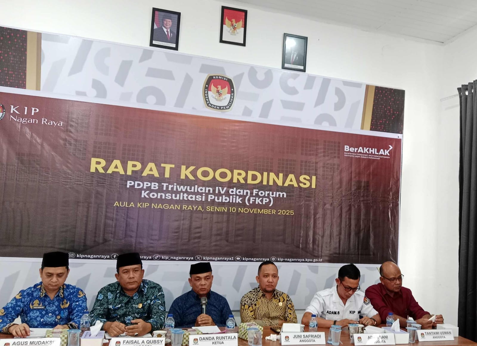 Narasiterkini.com, Suka Makmue – Komisi Independen Pemilihan (KIP) Kabupaten Nagan Raya, Provinsi Aceh gelar rapat koordinasi PDPB Triwulan IV dan forum konsultasi publik (FKP) untuk pemukhtakhiran data pemilih secara berkelanjutan. Kegiatan tersebut berlangsung di Aula Kantor KIP setempat, Senin (10/11/2025).