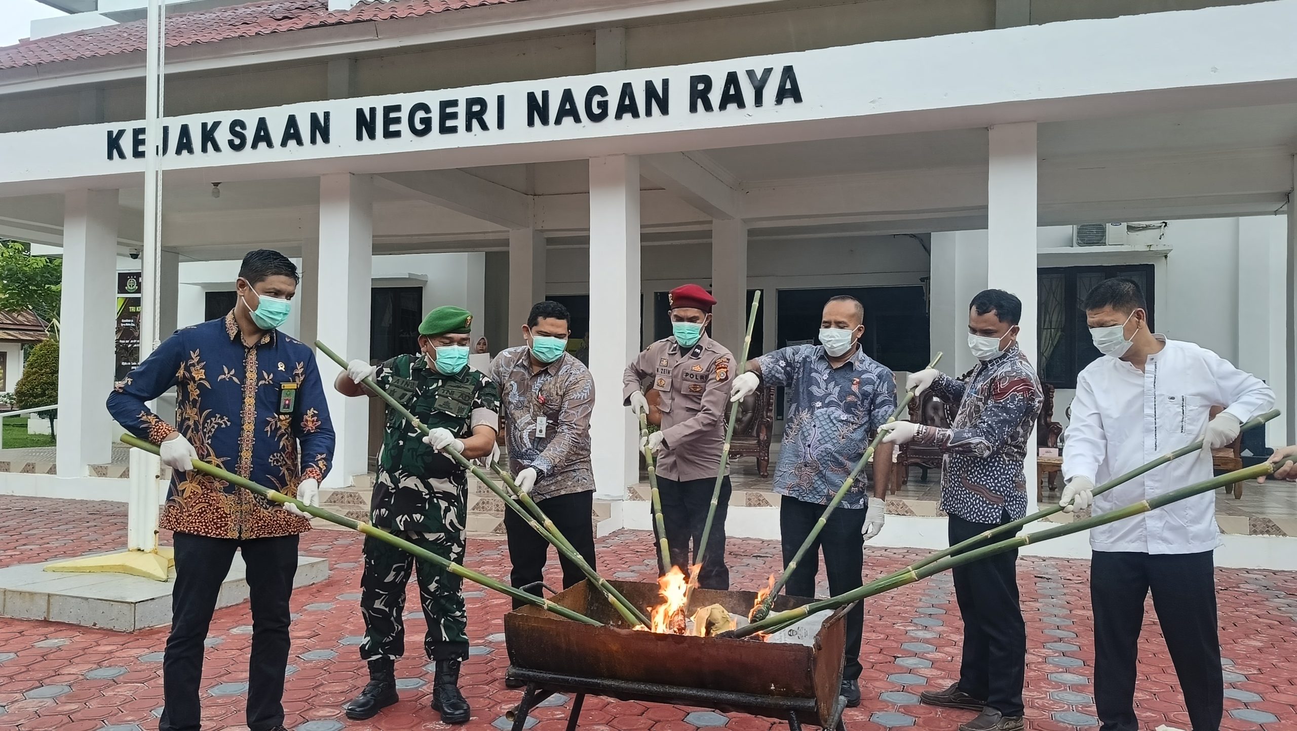 Narasiterkini.com, Suka Makmue- Kejaksaan Negeri Nagan Raya bersama perwakilan Forkopimda lainnya melakukan pemusnahan barang bukti yang telah berkekuatan hukum tetap (inkrach), Jumat, (21/11/2025) di halaman kantor kejaksaan setempat