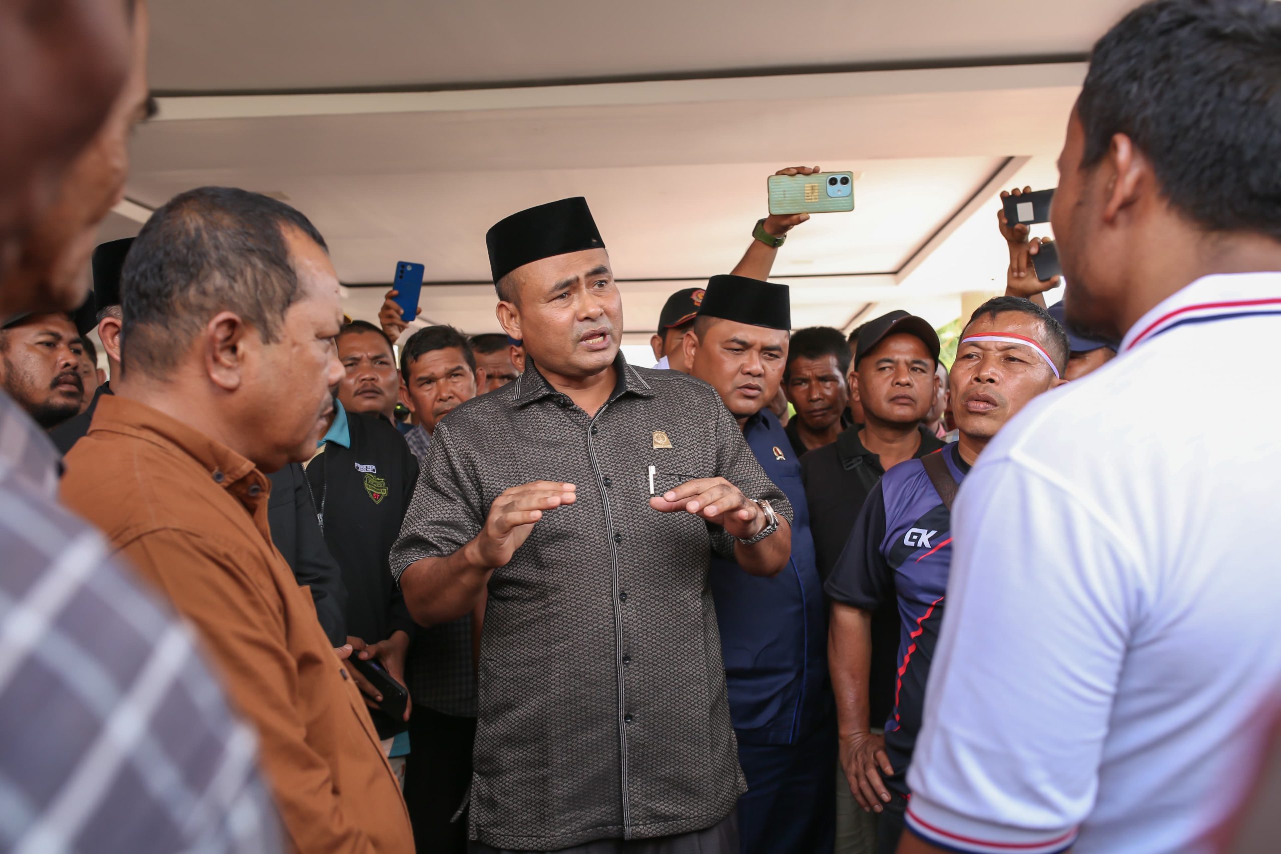 Tak berselang lama, perwakilan pendemo, wakil rakyat, unsur dari TNI Polri dan perwakilan eksekutif (diwakili oleh Plt. Sekda, Zulkifli, S.Pd) melakukan pertemuan di aula rapat DPRK setempat