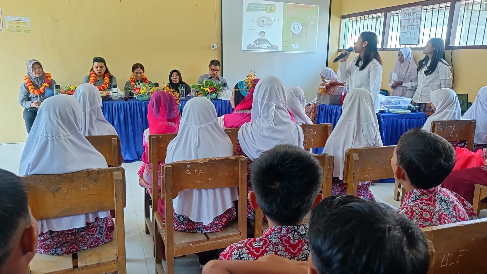 Usai kegiatan penyerahan CSR bidang olahraga, Ny. Principal Director didampingi tim melakukan kegiatan sosialisasi makanan sehat. Dalam kegiatan tersebut juga disediakan diskusi interaktif bahkan kuis tanya jawab seputar makanan sehat, makanan mengandung karbohidrat dan lainnya.